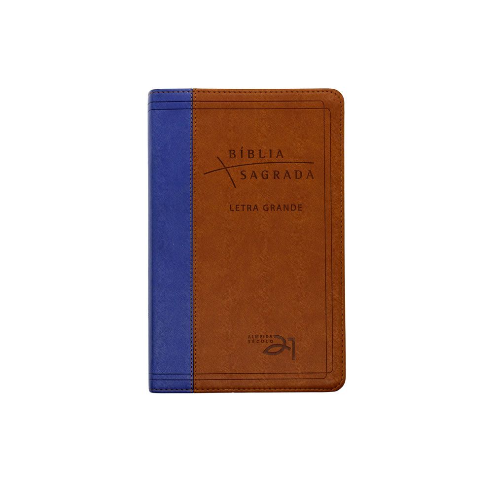 Bíblia Almeida Século 21 Letra grande luxo Castanho e azul
