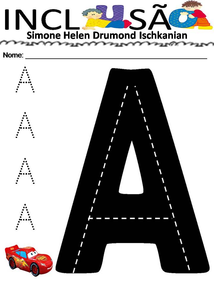INCLUSÃO AUTISMO E EDUCAÇÃO SIMONE HELEN DRUMOND CARROS E PISTAS COM AS LETRAS DO ALFABETO