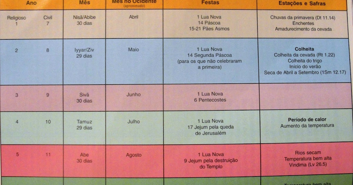 O calendário hebraico bíblico, datas e estações Hebraico, Bíblia e Datas
