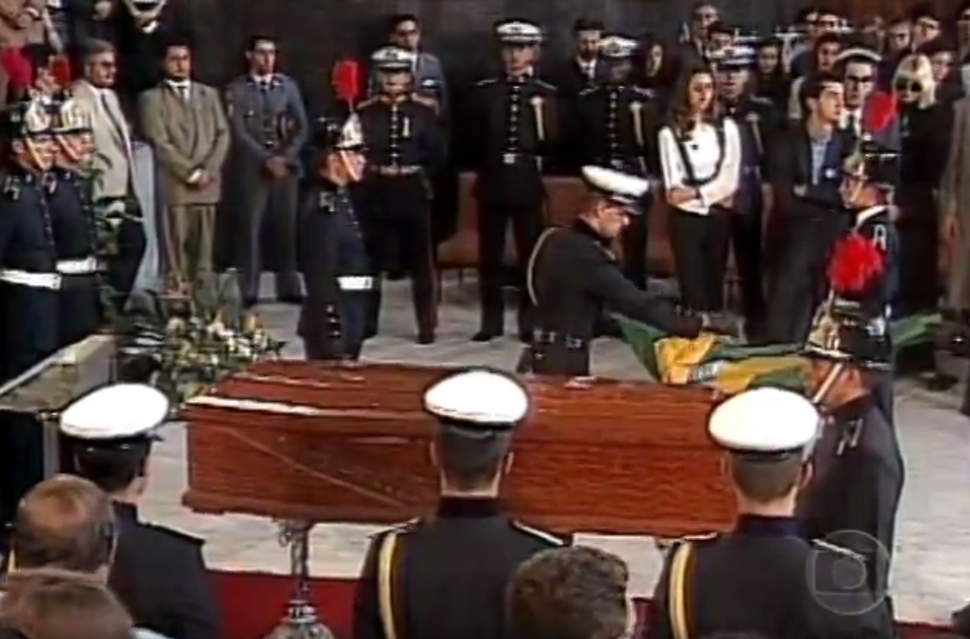 Reportagem do velório do piloto Ayrton Senna da Silva pelo Jornal Nacional seguida de flashes ao vivo da carreata percorrendo São Paulo com o caixão antes do.