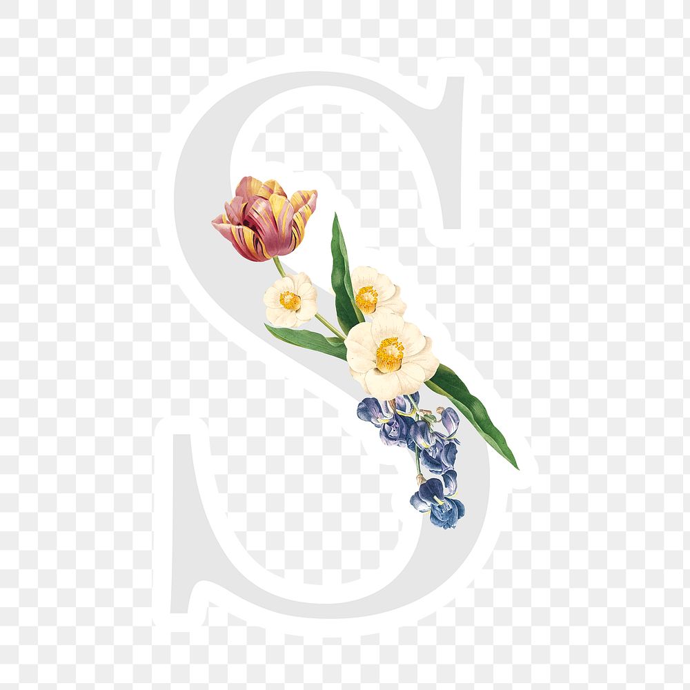Flower decorated capital letter S Premium PNG Sticker rawpixel