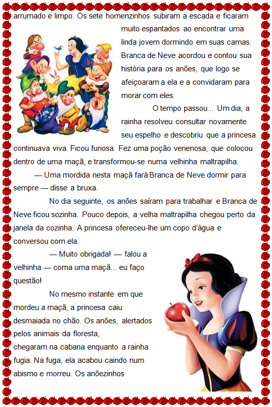 História Branca de Neve (Conta Pra Mim) para Imprimir Grátis INDAGAÇÃO