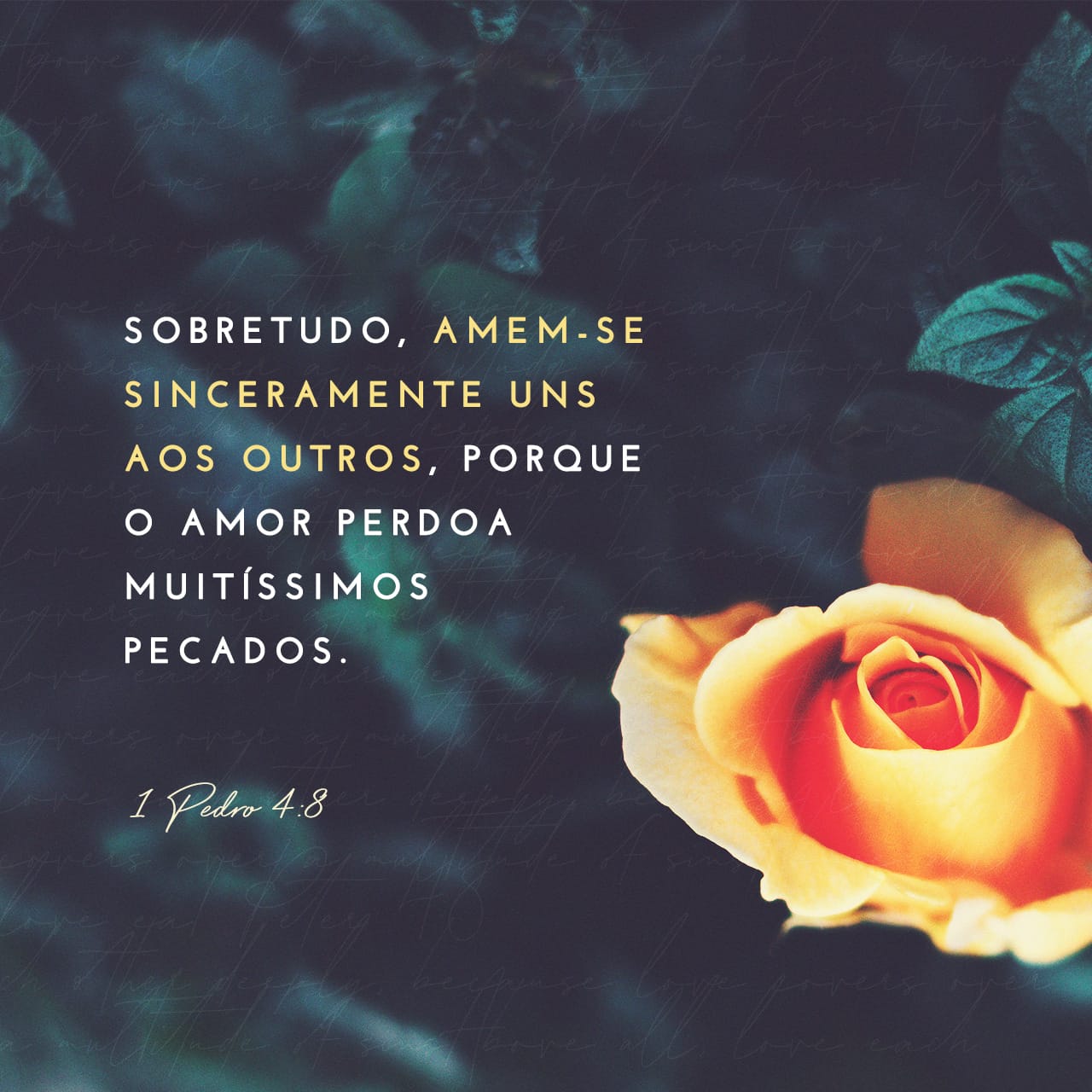 1Pedro 48 Acima de tudo, amem sinceramente uns aos outros, pois o amor perdoa muitos pecados