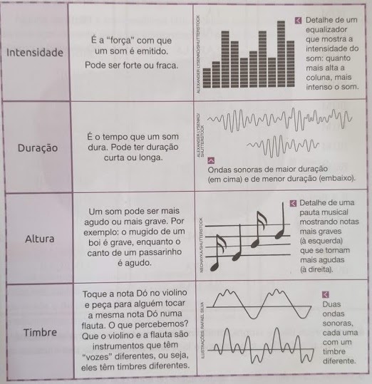 Operação Cosmos: a ameaça da gigante vermelha (manual do professor). Luis Fábio S. Pucci, São Paulo: Redalgo, 2009. Objetivos1. Identificar as propriedades e características do som.2. Diferenciar timbre, altura e volume (intensidade) do som.ComentáriosAlgumas atividades simples podem ajudar os alunos a compreender fen&oc.