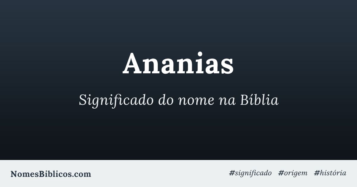 Significado do nome Ananias. O nome Ananias tem origem hebraica e é uma variação de João. Na Bíblia, Ananias é citado em Neemias 3.23 como Hananiah, que significa "o amado de Deus". Esse nome carrega consigo o significado de ser amado e abençoado 1 por Deus, transmitindo uma aura de proteção e proximidade 2 divina.. Ananias também é conhecido por sua coragem e fé, como no relato 3.