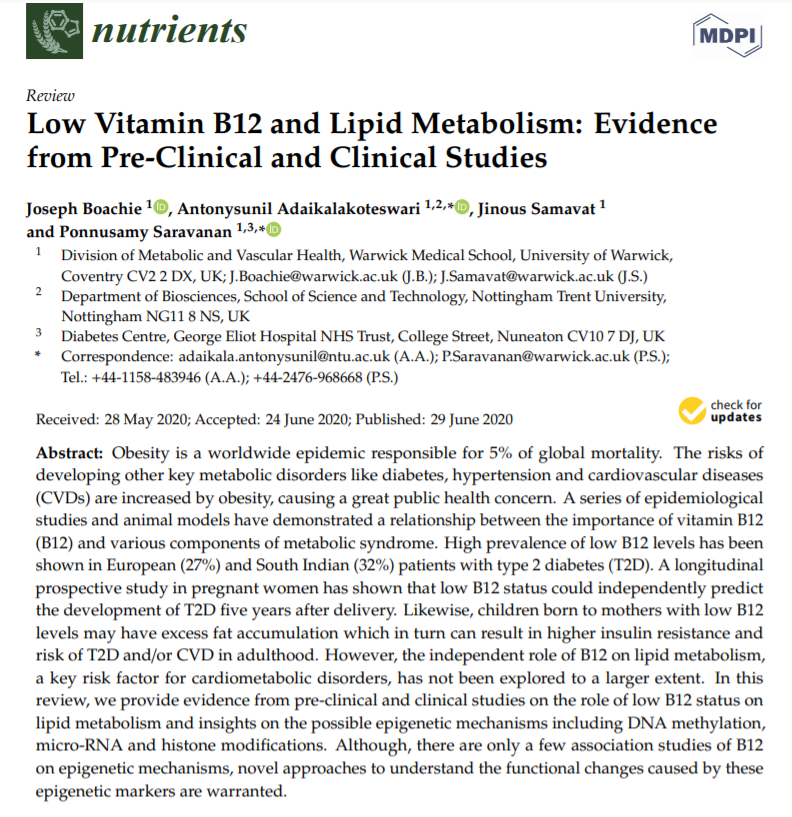 Baixa vitamina B12 e metabolismo lipídico evidências de estudos préclínicos e clínicos