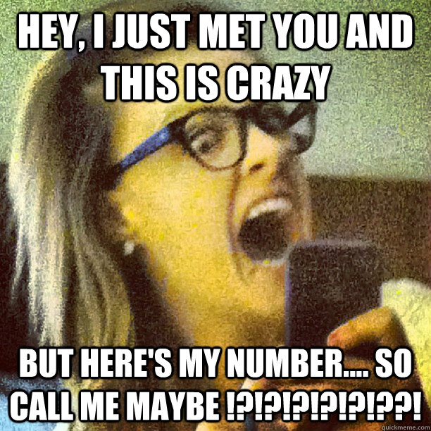 Hey, I just met you and this is crazy But here's my number.... SO call me maybe