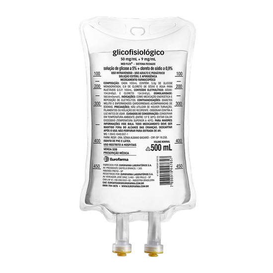 50mg/mL. IDENTIFICAÇÃO. solução de glicose 5% solução injetável de glicose monoidratada a 5%. APRESENTAÇÕES. LINHAMAX® - SISTEMA FECHADO. Solução injetável com 50mg/mL de glicose monoidratada. Embalagem contendo frasco de polipropileno transparente SISTEMA FECHADO contendo 250mL ou 500mL. MED FLEX® - SISTEMA FECHADO.