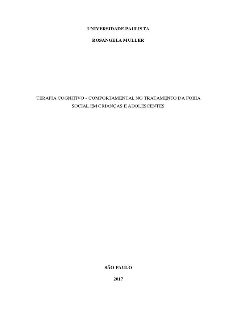 do tratamento da fobia social por meio da terapia cognitivo-comportamental. Resultados: Revisão da literatura sugere que a fobia social é uma condição prevalente e crônica, caracterizada por.